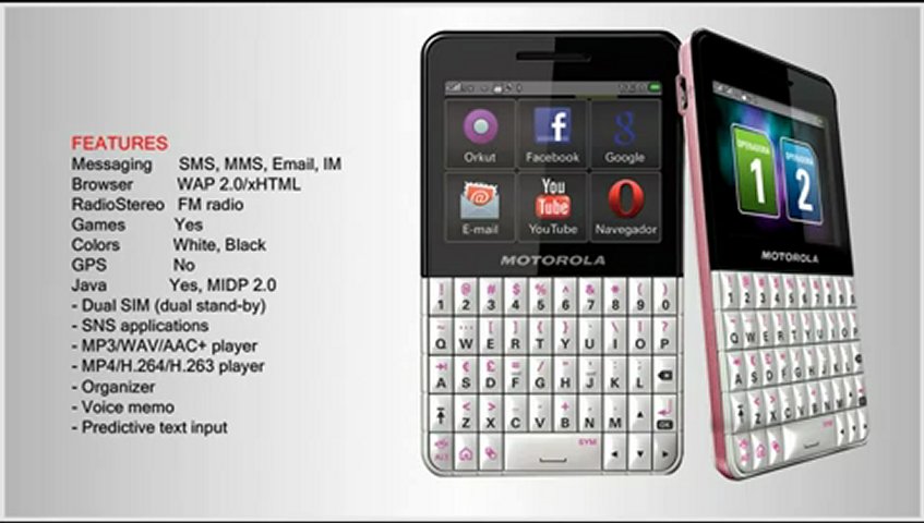- QWERTY keyboard - SNS applications - Stereo FM radio |
