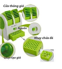 điều hòa khay đá mini để bàn 2 ngăn 2 in 1. nhựa để làm cái điều hòa mini này mình thấy cũng cứng cáp. Nó rất là nhỏ gọn, đương nhiên là bé thế này cũng chỉ dùng cho 1 người thôi. cho đá vào khay rồi cánh quạt nó quạt rồi có hơi mát ra thấy rất là thích, nhất là ngồi làm việc thì có 1 cái này rất là tiện và mát nữa, đã thế nó không tốn điện đâu, dùng cũng chả đáng bao nhiêu, cắm vào cây máy tính dùng thoải mái.