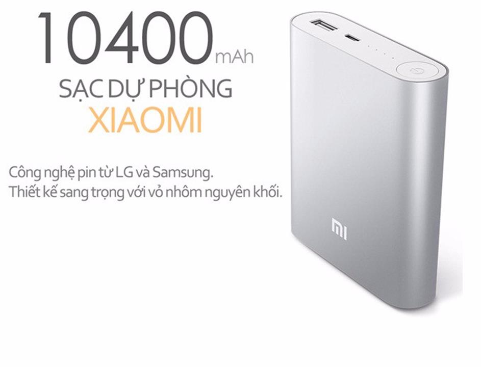 – Xiaomi 10400mAh có dung lượng 10400mAh với cổng sạc thiết bị tối đa 2.1A có thể sạc đầy pin cho thiết bị pin lớn như máy tính bảng.